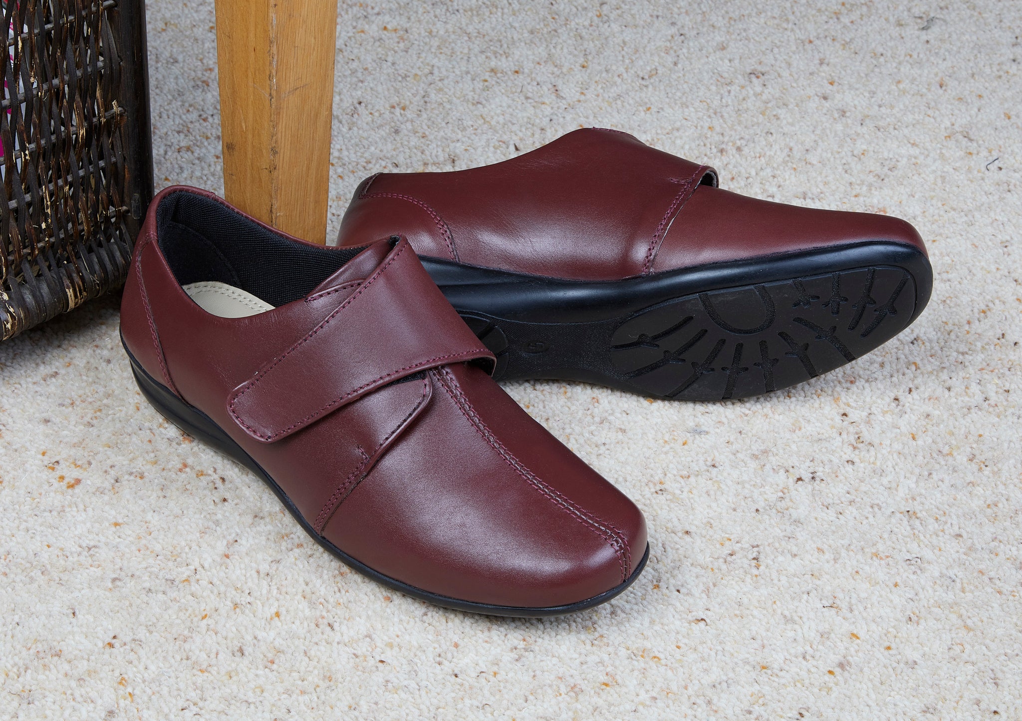 A high quality ladies shoe. Made with a waterproof leather upper, leather insole, and hard wearing sole. Velcro fastening. E Fitting (wide).