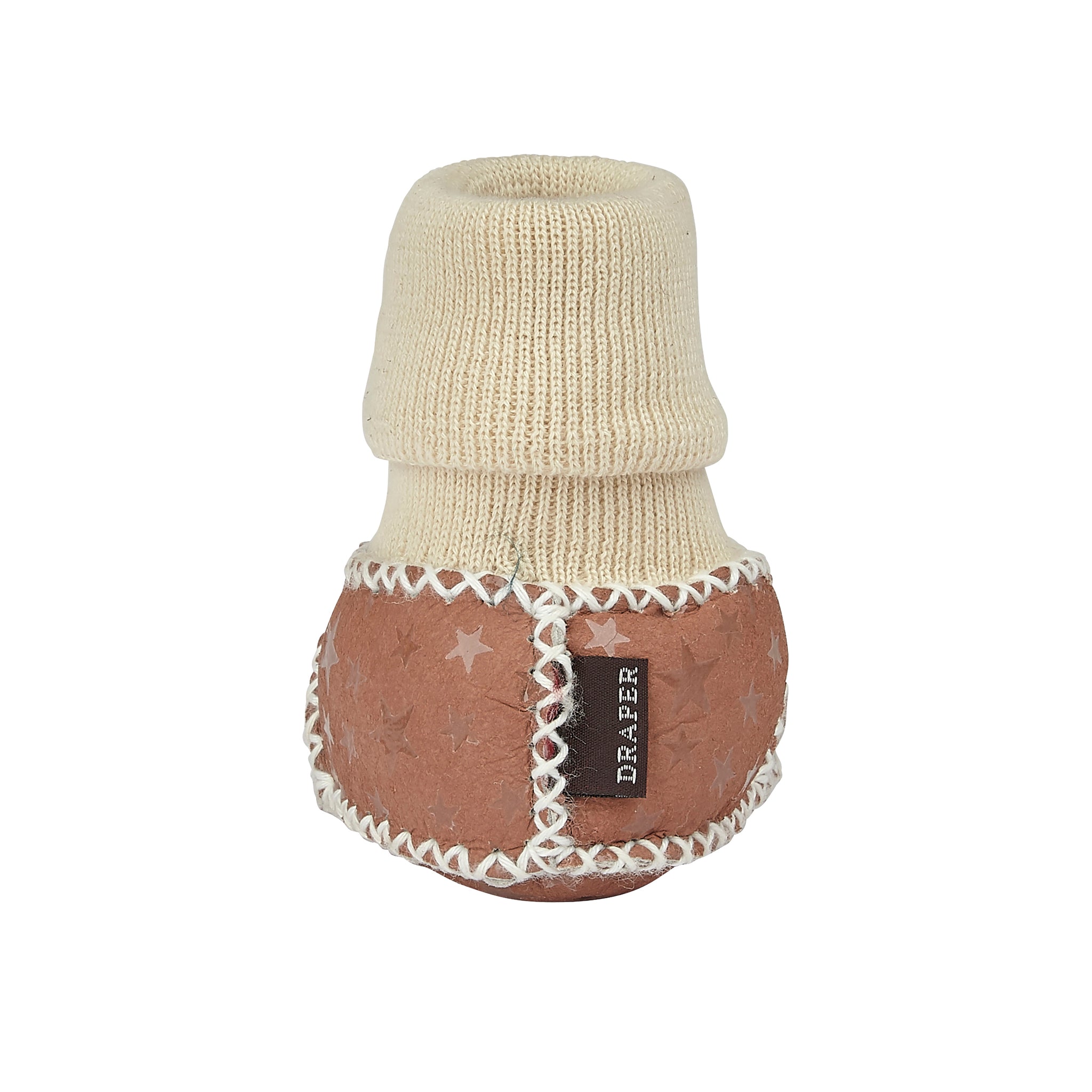 Our luxury baby slipper socks. With a real sheepskin lining for warmth and comfort, and a sock top to hold them onto the feet so that they will not fall off. The perfect gift.