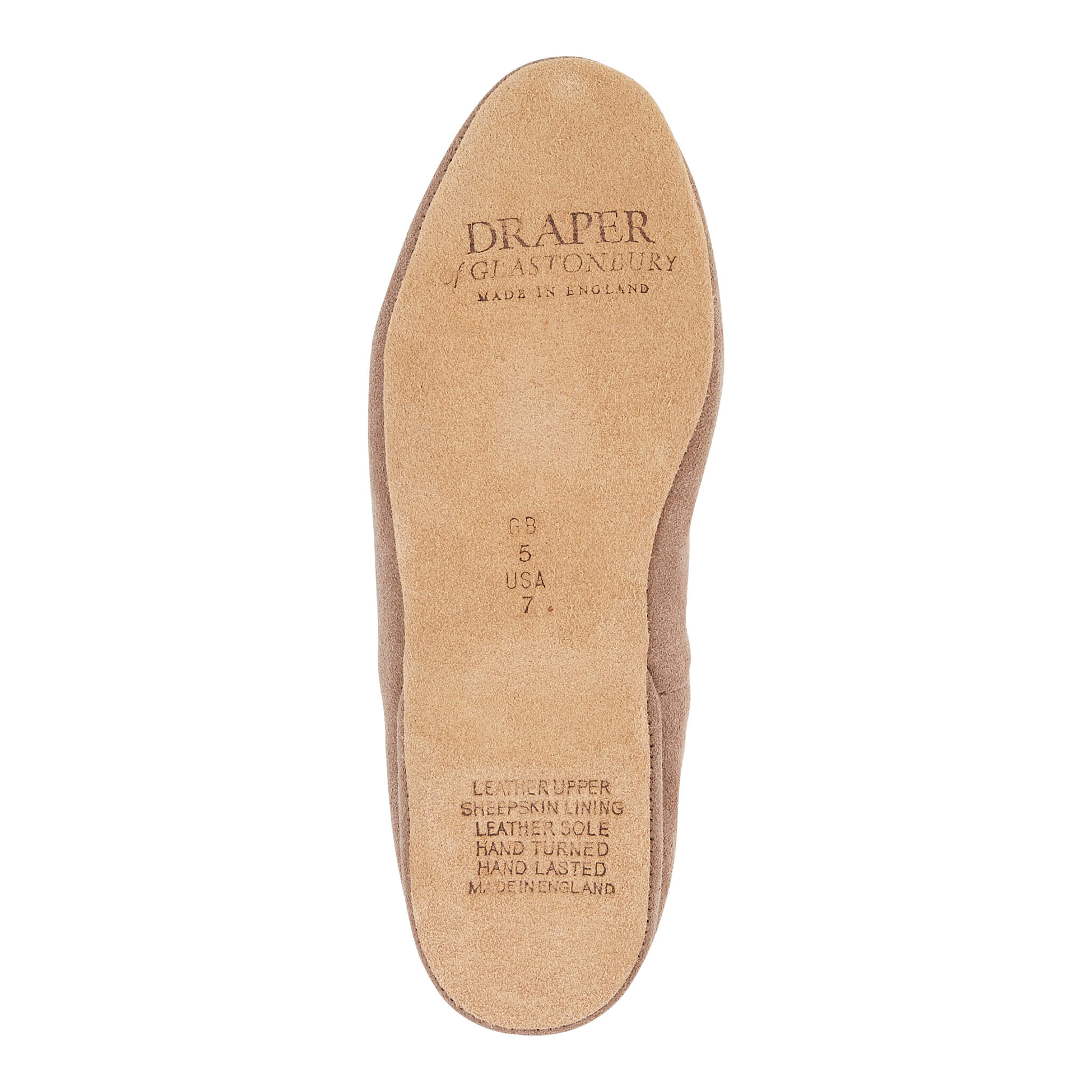 We hope you will enjoy the comfort and warmth of your new Draper of Glastonbury sheepskin slippers, boots or gloves. They each will take around 4 weeks to make as they are individually hand made. (Although they are held in stock and ready to send to you as soon as you order). To care for the slipper, suede must be kept dry, do not immerse in water. If they do get wet, let them dry naturally. The suede nap can be ‘buffed up' with a stiff brush. Clean leathers with a damp cloth and mild detergent and remove the moisture with a dry cloth afterwards. The sheepskin fleece can also be rubbed with a damp cloth and mild detergent and remove the moisture with a dry cloth afterwards. The wool can be brushed or combed to renew its appearance.