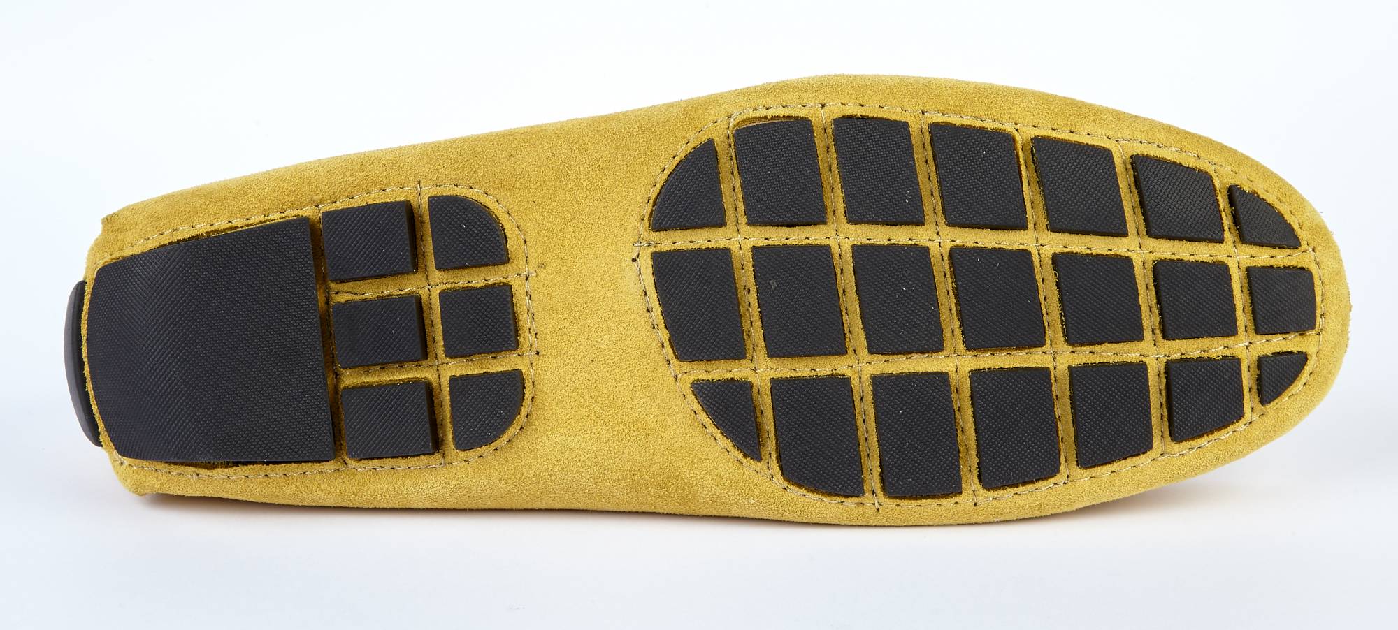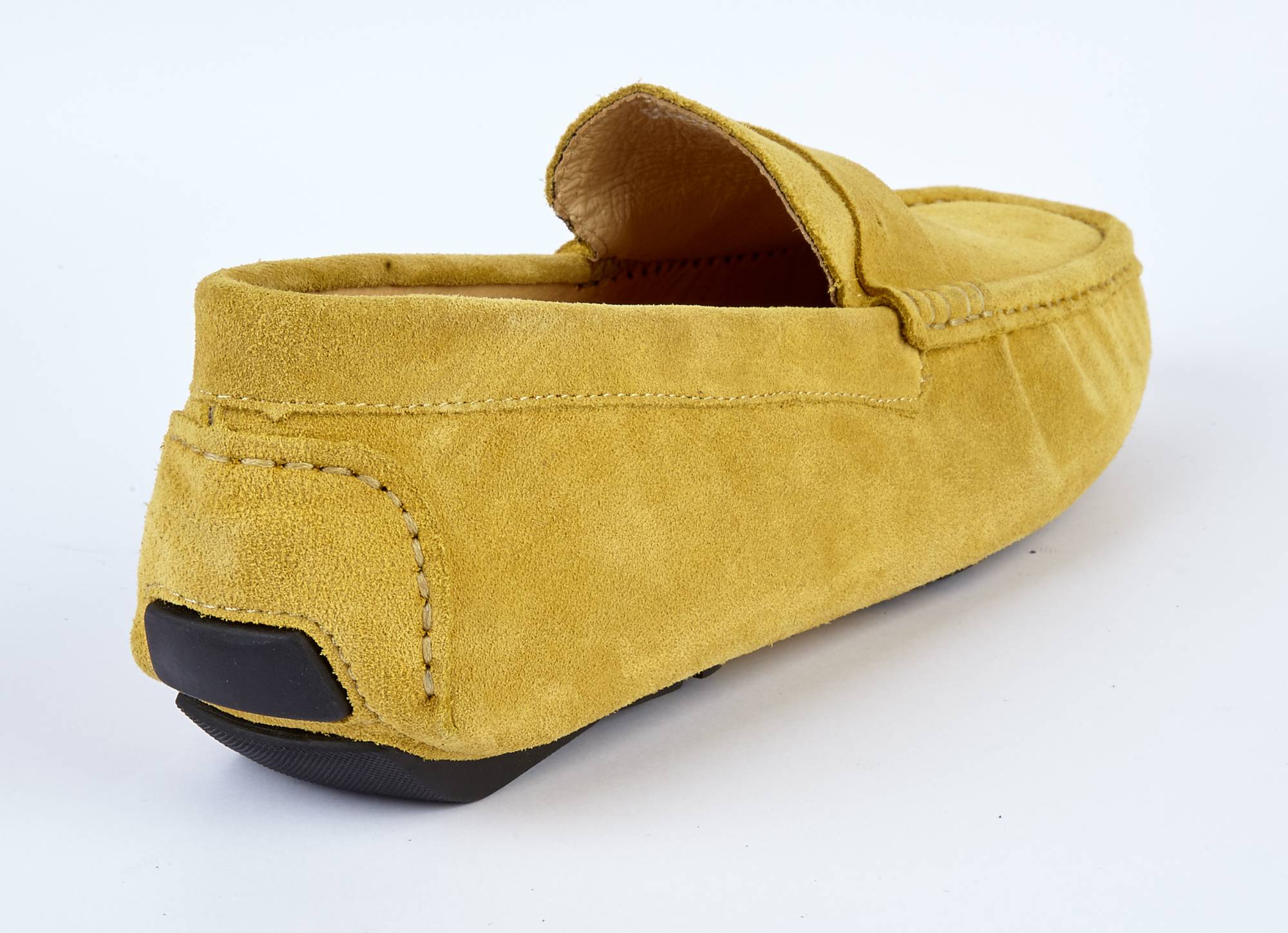Our mustard suede driving shoes for men, perfect for smart and casual wear. Can be used for a smart look at the office or for a more casual look during weekends too. Made with a high-quality suede upper, rubber sole and leather lining throughout. The fitting is a G width, but slightly wider rather than narrow. The rubber sole comes all the way round to halfway up the heel at the back, making it ideal for driving as the back of your shoe will not wear out when using pedals.